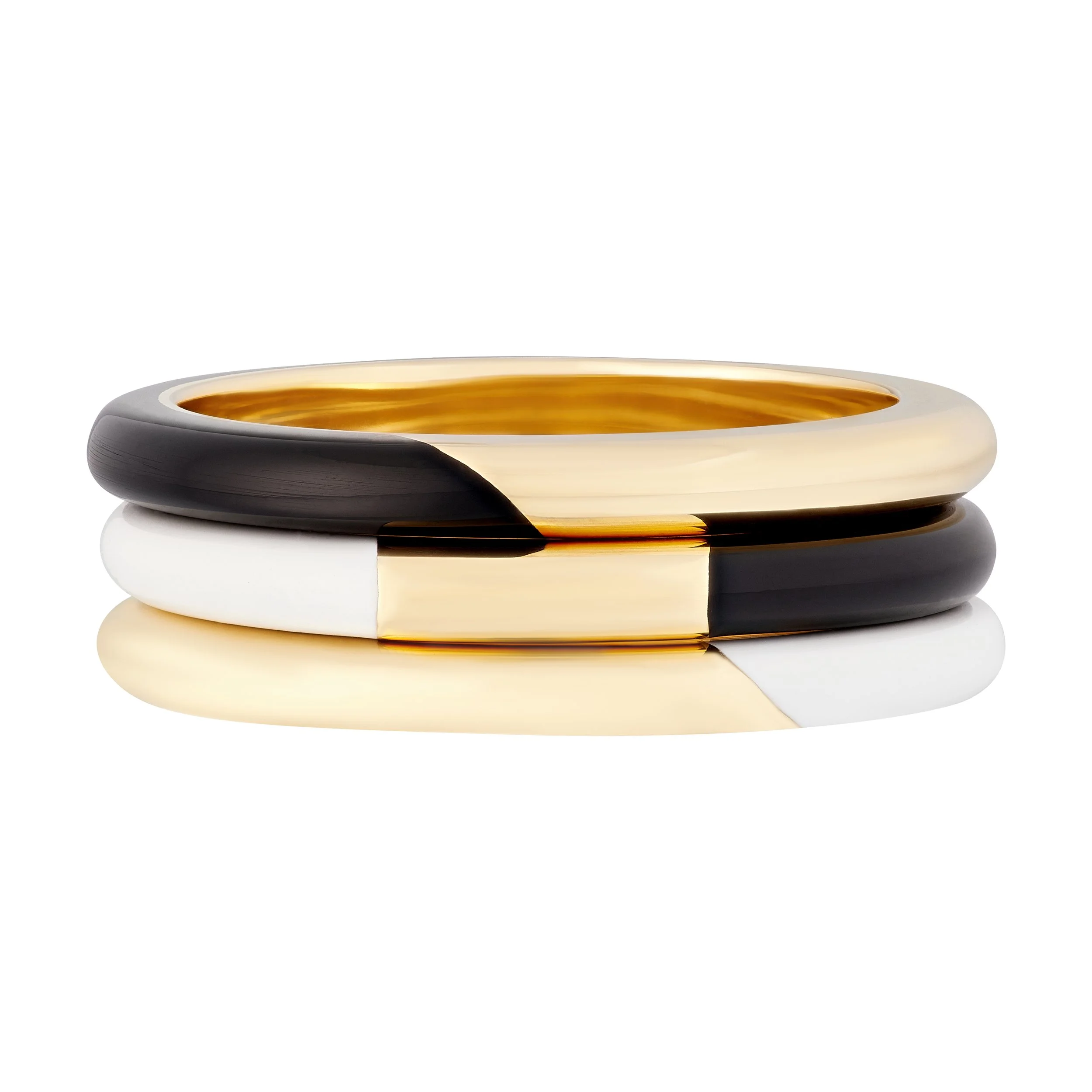 Handmade in the UK, the Candy Lacquer collection is inspired by the traditional techniques of Japanese lacquer work, and their striking simplicity and blocks of colour. Candy Lacquer bands can be made-to-measure in a variety of colour selections for the lacquer.