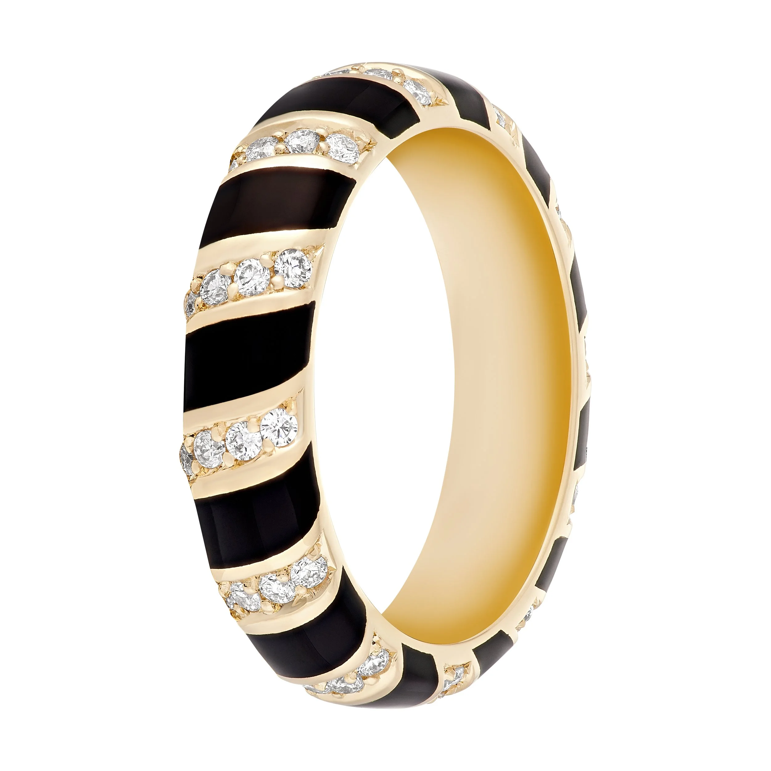 14ct yellow gold, lacquer enamel & white diamond pave.