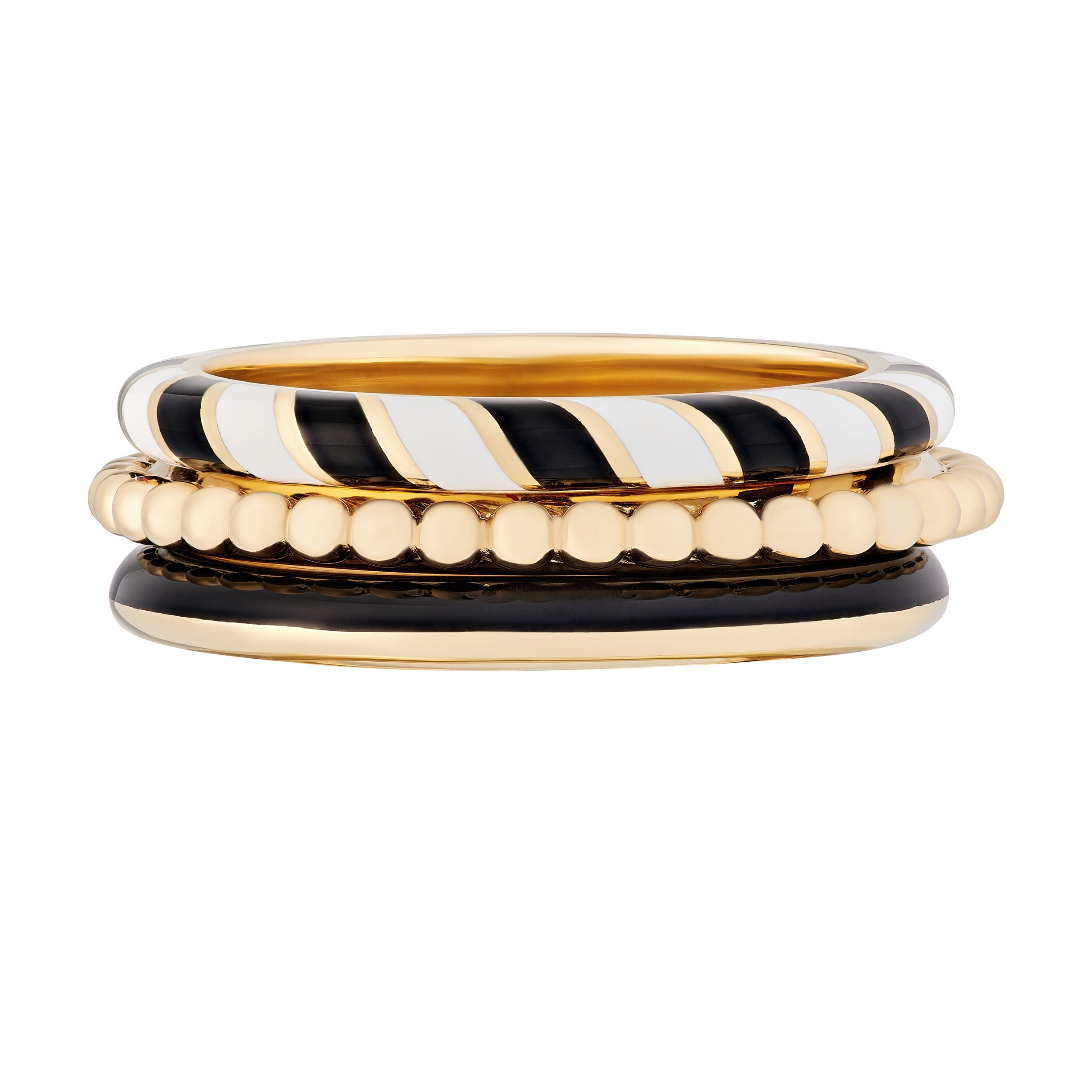 The Memphis collection is cast and then hand lacquered in the UK. Inspired by Ettore Sottsass's famous design movement, this collection enables the wearer to create totemic stacks of colour. The cold lacquer gives the enamel strength as well as offering an unlimited palette, and the pieces can be worn together or next to client’s existing jewels to add flashes of vibrant colour. The pre-curated stacks propose groupings that Alice finds particularly harmonious.